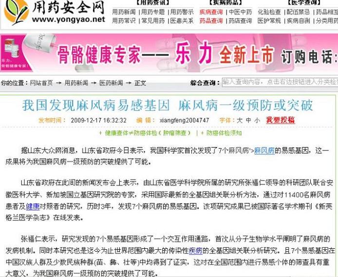 我国发现麻风病易感基因 麻风病一级预防获突破-用药安全网