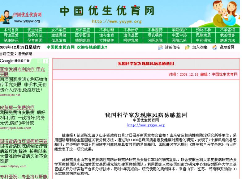 我国科学家发现麻风病易感基因-中国优生优育网
