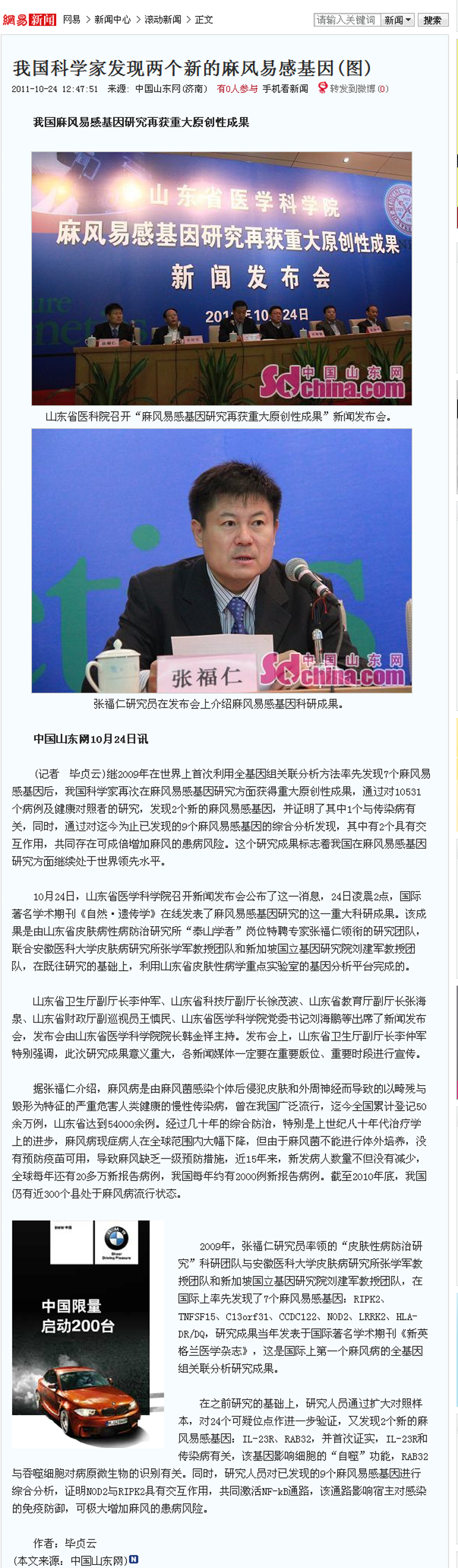 网易新闻中心-我国科学家发现两个新的麻风易感基因
