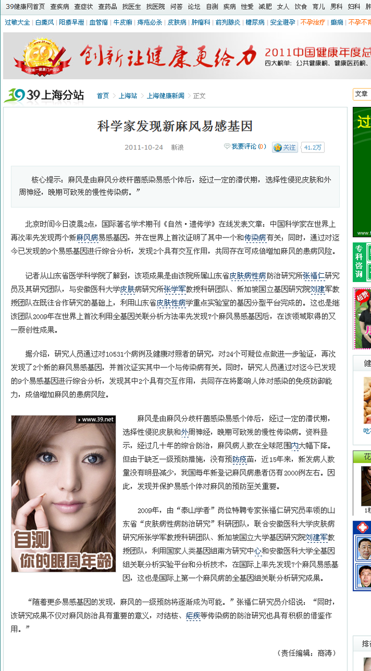 中国输血协会-中国科学家在世界上再次率先发现新麻风易感基因