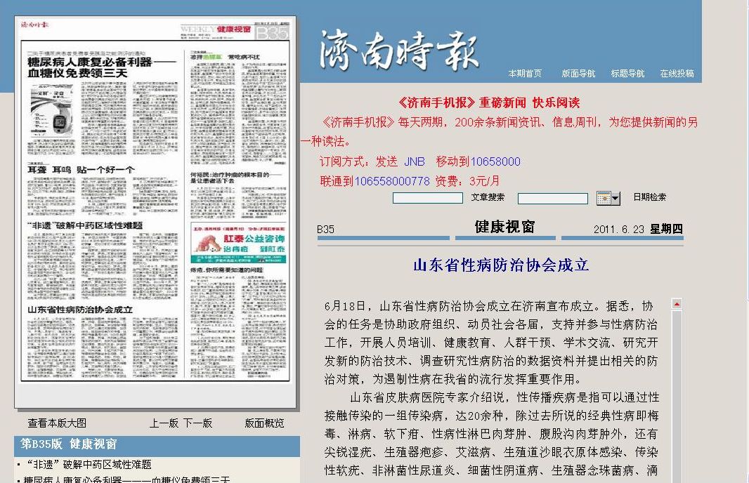 为了控制梅毒,2010年卫生部和省卫生厅制定了全国和全省梅毒预防与控制规划(2010-2020),把梅毒作为我国当前重点防治的性病,山东省性病防治协会正是在这一背景下成立的。目前性病防治工作是一项复杂的系统工程,要从防和治两方面着手开展工作,难度大,任务重,时间紧。山东省性病防治协会将以此为己任,致力于性病防治工作,为最终控制性病在我省的流行发挥重要作用。 (本刊记者)