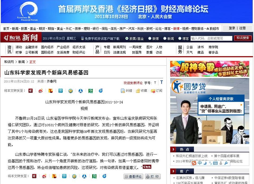 大众网--山东科学家在世界上再次率先发现新麻风易感基因