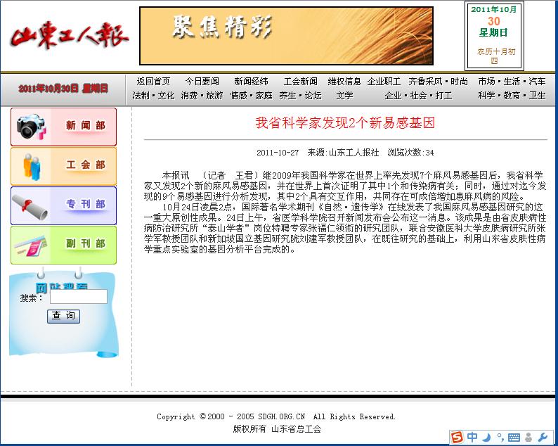 10月24日凌晨2点,国际著名学术期刊《自然·遗传学》在线发表了我国麻风易感基因研究的这一重大原创性成果。24日上午,省医学科学院召开新闻发布会公布这一消息。该成果是由省皮肤病性病防治研究所“泰山学者”岗位特聘专家张福仁领衔的研究团队,联合安徽医科大学皮肤病研究所张学军教授团队和新加坡国立基因研究院刘建军教授团队,在既往研究的基础上,利用山东省皮肤性病学重点实验室的基因分析平台完成的。