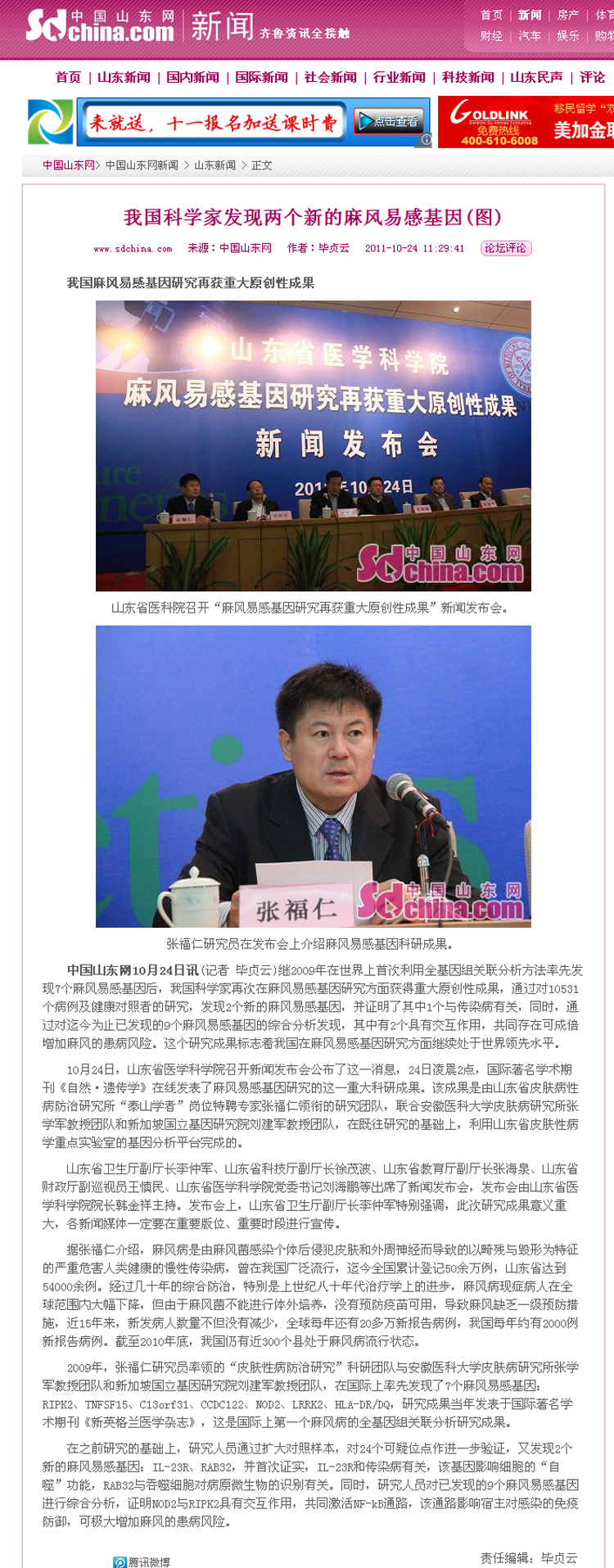 山东商报-麻风易感基因,又…