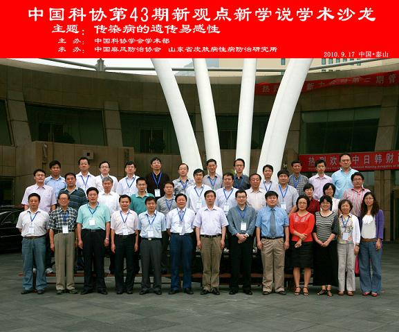 2010年9月16-18日,由中国科协主办、山东省皮肤病性病防治研究所和中国麻风防治协会共同承办的中国科协第43期新观点新学说学术沙龙在泰安举行,这是该项目首次落户山东。本期沙龙由中国医学科学院皮肤病研究所副所长、中国麻风防治协会会长张国成研究员,山东省皮肤病性病防治研究所所长、中国麻风病防治协会副会长张福仁研究员共同担任领衔专家。共有来自北京大学、复旦大学、南京医科大学、山东大学、山东中医药大学、青岛大学等6所高校和中国科学院、中国医学科学院、国家人类基因组南方中心、深圳华大基因科技有限公司、山东省医学科学院等多家科研机构的27名学者参加了本期沙龙。山东省医学科学院院长韩金祥研究员、山东中医药大学校长欧阳兵教授、中国生物技术中心于振行博士作为专家到会并发言,中国科协调研宣传部金光伟处长出席沙龙。