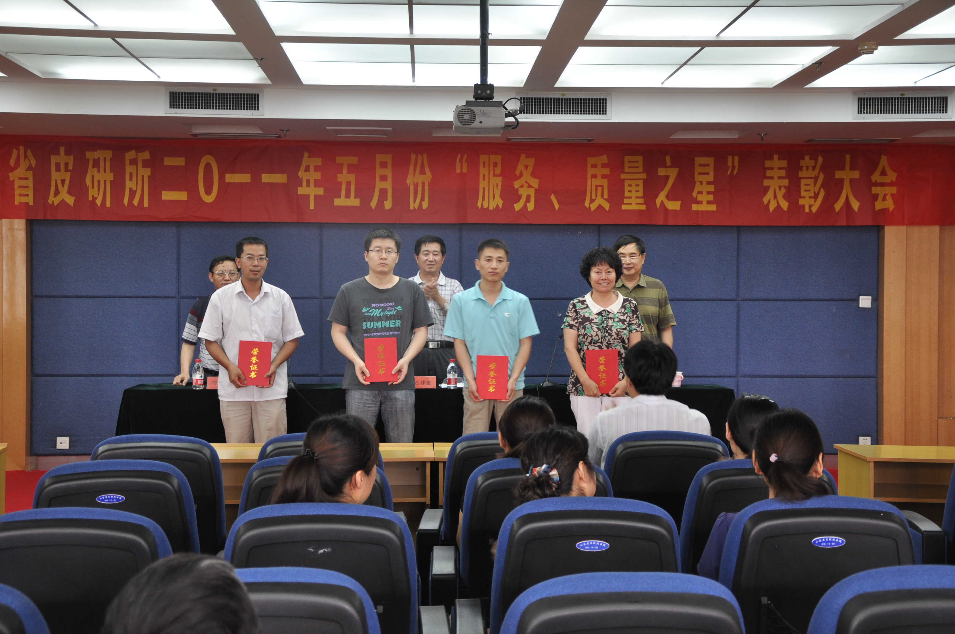 6月29日省皮研所召开了五月份“服务质量之星”表彰大会,对五月份的医疗之星汪新义、服务之星韦保建、科研之星于永翔、制剂之星程鹏进行表彰,并颁发了荣誉证书和奖金。汪新义、韦保建和于永翔作为先进代表,结合自身从事的工作抒发感想、畅谈体会,作了典型发言。吕建进同志在总结讲话中首先向获评人员表示祝贺,充分肯定了他们在自己岗位上扎实的工作和取得的成绩,并号召全体职工向“服务、质量之星”学习,继续发扬创先争优、争做齐鲁先锋的精神,切实开展好“三好一满意”活动,为我所在新的阶段实现新的发展贡献自己的力量。