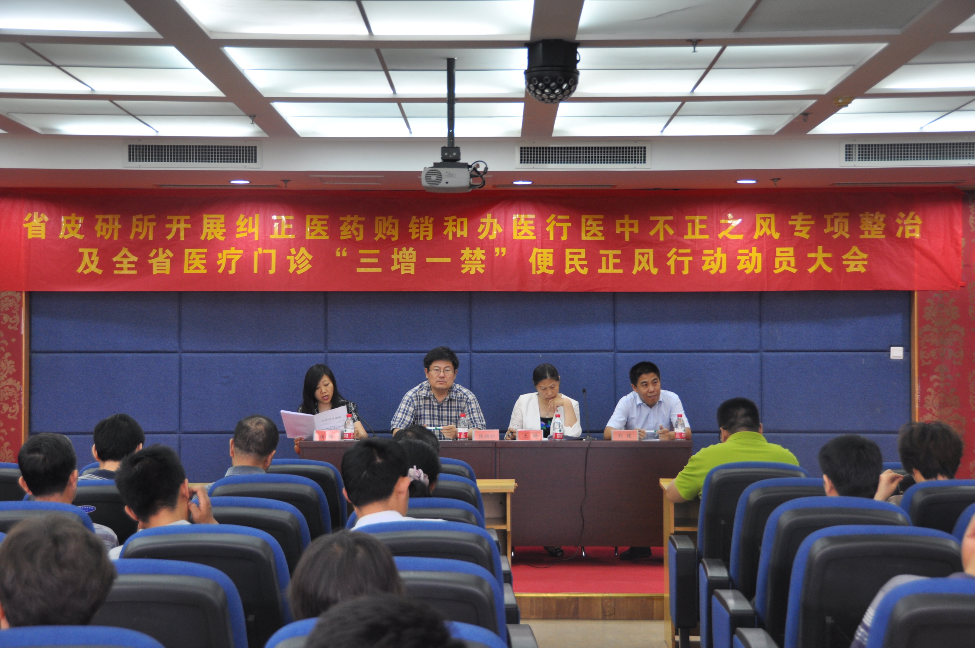 为进一步贯彻落实省委党的群众路线教育实践活动领导小组及省卫计委关于纠正医药购销和办医行医中不正之风专项整治工作以及开展医疗门诊“三增一禁”便民正风专项行动活动精神,保障行动效果,近日,我所组织召开了专项行动动员大会。会议由张福仁所长主持,所领导班子出席会议,全所干部职工80余人参加会议。