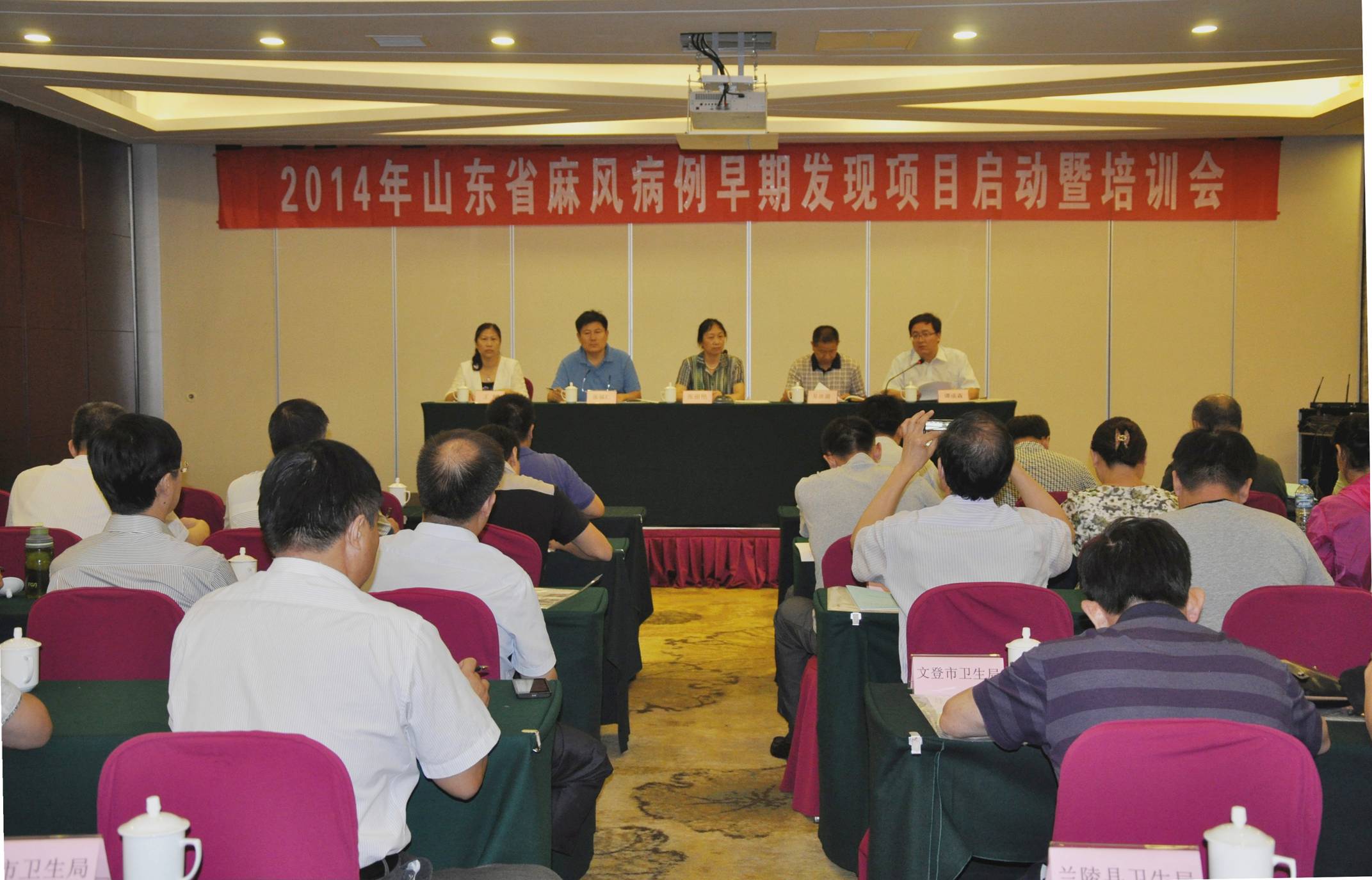 8月11日, 2014年山东省麻风病例早期发现项目启动培训会议在济南召开。省卫计委监察专员张丽艳、疾控处副处长谭成森,省医科院医防处副处长易继湖,省皮肤病性病防治研究所所长张福仁、党委书记王婷出席会议,各项目市、县卫生局,各市、县麻风性病防治专业机构负责人及业务科室主任共100余人参加了会议。