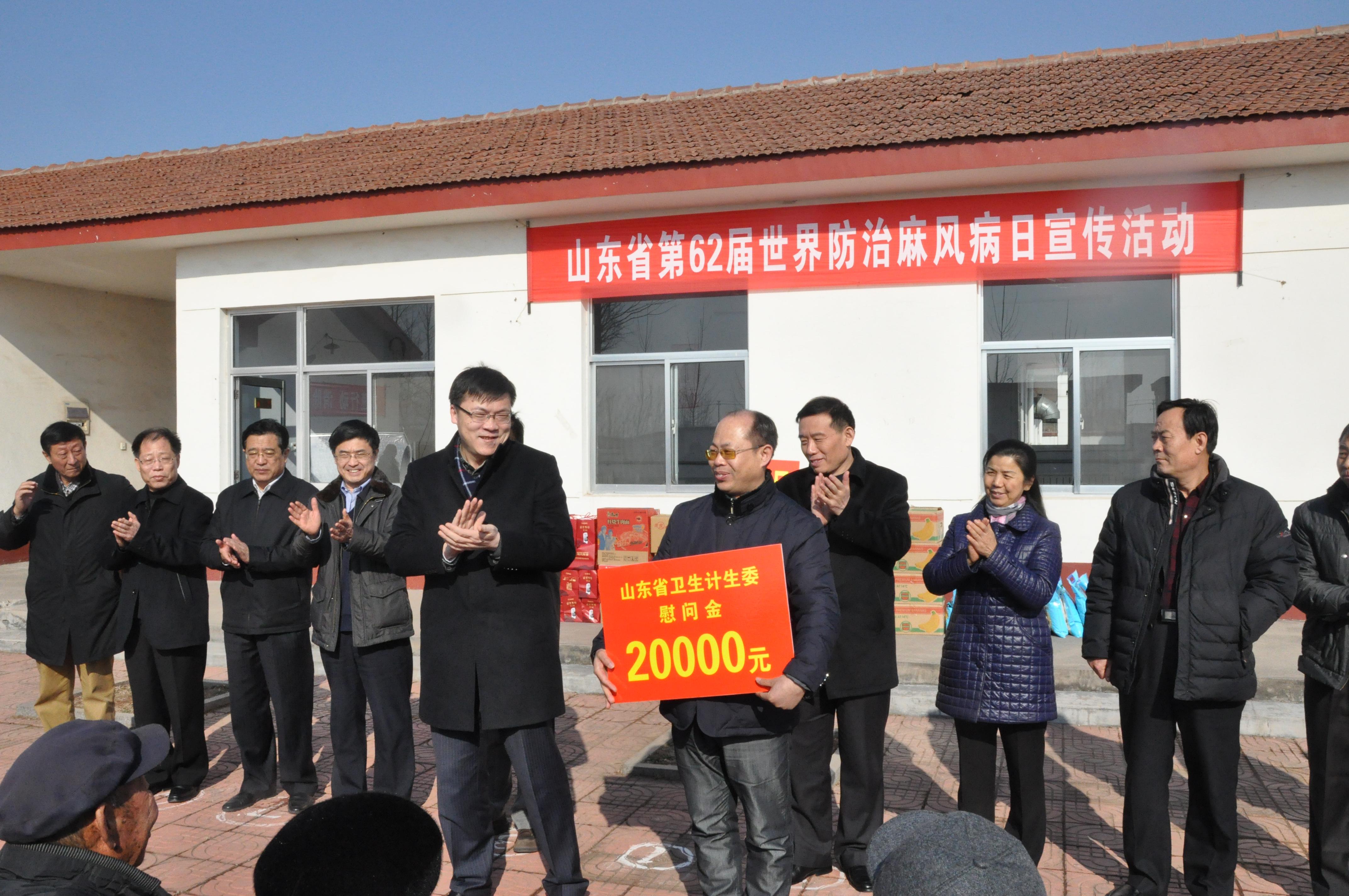 1月22日,第62个“世界暨中国防治麻风病日” 到来之际,山东省卫生计生委、省医学科学院、省麻风防治协会、省民政厅、省红十字会、省残联在诸城市麻风村开展了麻风病日慰问和捐赠活动。省卫计委副主任左毅,省麻风防治协会会长、省医学科学院院长郭伟星教授,省麻风防治协会副会长、省医科院副院长、皮研所所长张福仁教授,省红十字会副会长金汝华,省民政厅社会救助处处长杨传禄,省残联康复部处长郭金亮等出席活动,并慰问了一线麻风防治工作者和驻村疗养员。今年世界防治麻风病日的主题是“加速行动,消除麻风危害”。