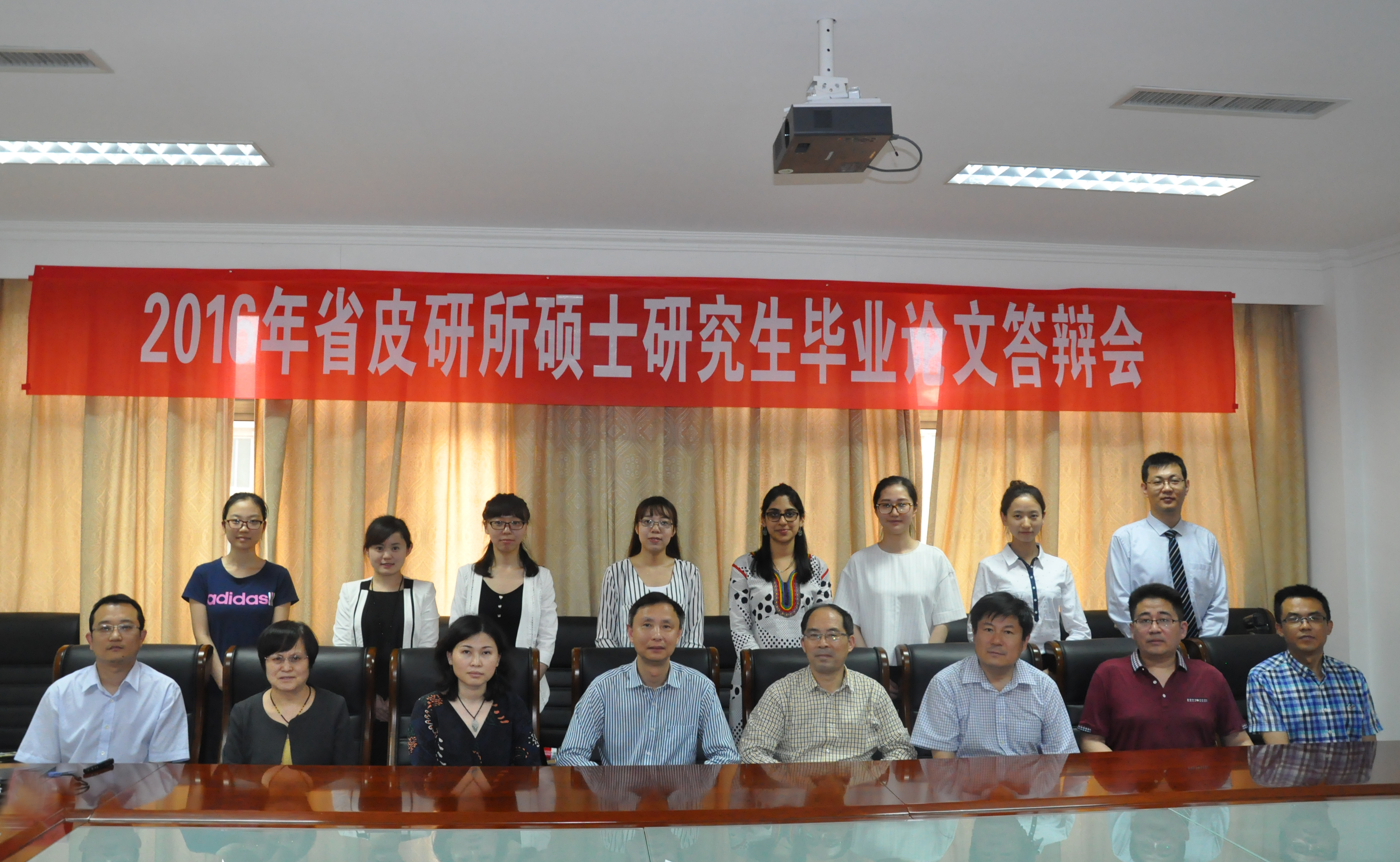 5月19日下午,省皮研所举行2016年硕士研究生毕业论文答辩会,答辩委员会由中华医学会皮肤病学分会名誉主任委员、安徽医科大学原校长、皮肤病学教育部重点实验室主任、博士生导师张学军教授,中国医学科学院皮肤病研究所&皮肤病医院所/院长、博士生导师顾恒教授,山东省医学科学院副院长、山东省皮肤病性病防治研究所所长、博士生导师张福仁研究员,山东省皮肤病性病防治研究所所长助理、硕士生导师田洪青主任医师,山东大学附属济南市中心医院皮肤科主任党宁宁教授,山东省皮肤病性病防治研究所医务科科长潘付堂副研究员组成。省医科院医学与生命科学学院常务副院长刘亚民研究员应邀出席答辩会,所内硕士生导师及在读博硕士研究所20余人参加答辩会。