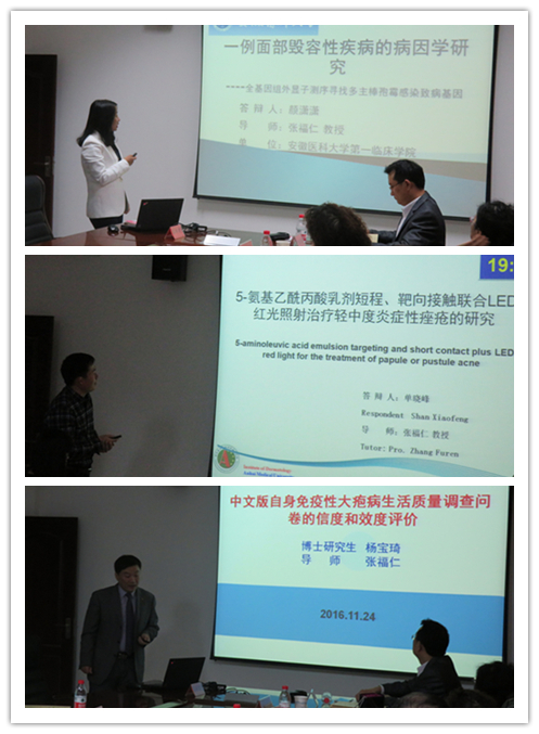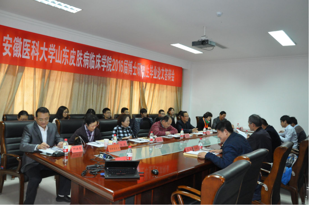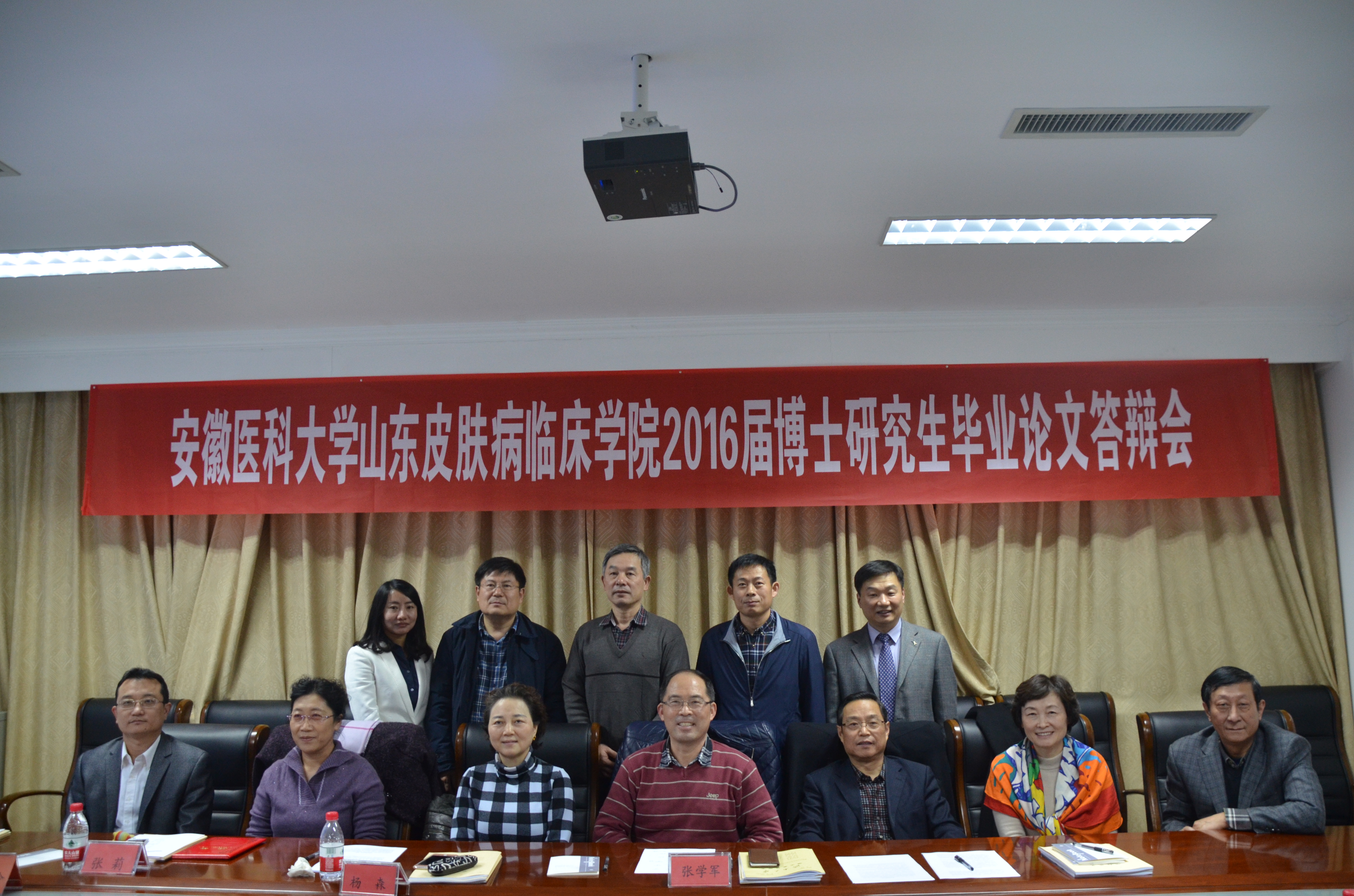 11月24日下午,山东省皮肤病性病防治研究所暨山东省皮肤病医院成功举办了安徽医科大学山东皮肤病临床学院2016届临床医学博士专业学位答辩会,由山东省医科院副院长、山东省皮肤病性病防治研究所所长张福仁教授指导的3位临床医学专业学位博士顺利通过答辩,获得了被推荐授予博士学位的资格。