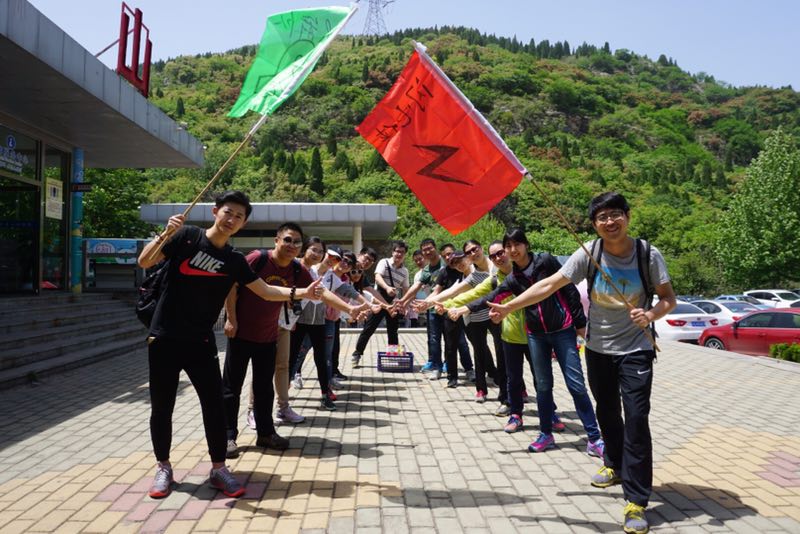 活动从上午8点半开始,培训教练首先带领大家进行“团队破冰”,通过一系列小游戏,使大家彻底放松身心,以一个好的状态来迎接一天的培训课程。随后所有人员分为两队,从确定队长、队名、口号等开始,各队群策群力,开展了“快速运水”、“信任背摔”等考验团体协作能力的项目,还挑战了“高空断桥”等高难度的项目,充分展现了青年人的风采。