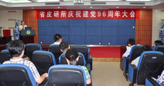 6月30日下午,省皮研所党委组织召开党员大会,庆祝建党96周年。会议由党委书记王婷主持,所党委成员、全体党员51人参加会议。