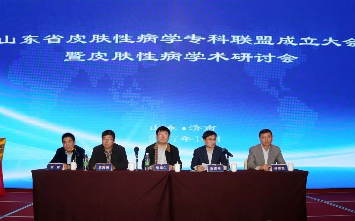 2017年10月30日,由山东省皮肤病性病防治研究所暨山东省皮肤病医院牵头,省立医院、青岛大学附属医院和省中医院共同牵头、148家医疗机构加盟的山东省皮肤性病学专科联盟在济南成立。山东省医学科学院副院长、省皮肤病性病防治研究所所长张福仁和省卫计委医政处调研员王海明、疾控处处长赵吉来、省立医院副院长孙志坚、省皮研所副所长刘健等领导出席会议并为联盟揭牌,来自联盟单位的238人参加了会议。