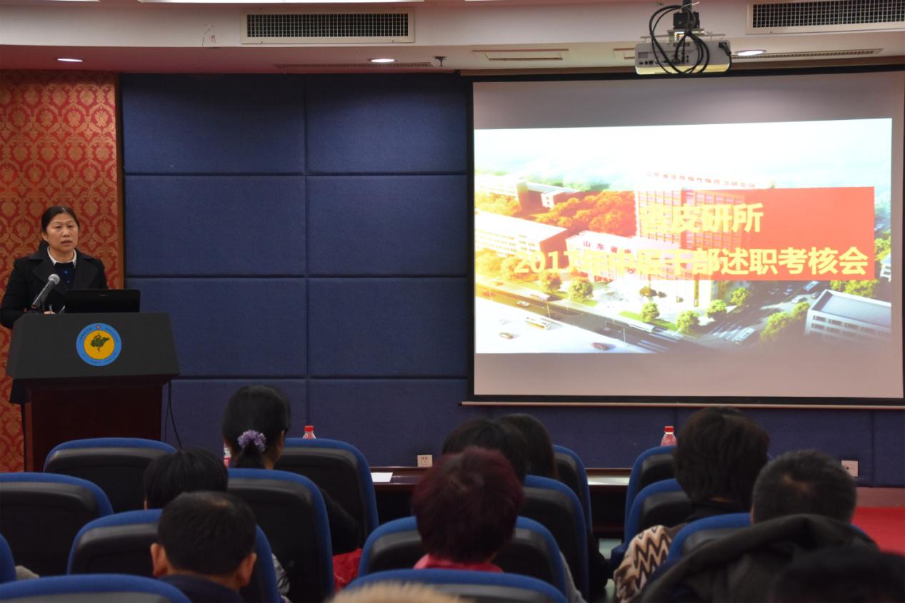 2018年1月17日,省皮研所召开中层干部述职考核会,对中层干部及科室2017年度工作开展情况进行了全面考评。会议由所党委书记王婷主持,所长张福仁等领导班子成员、中层干部及中级以上专业技术人员代表共计50余人参加会议。