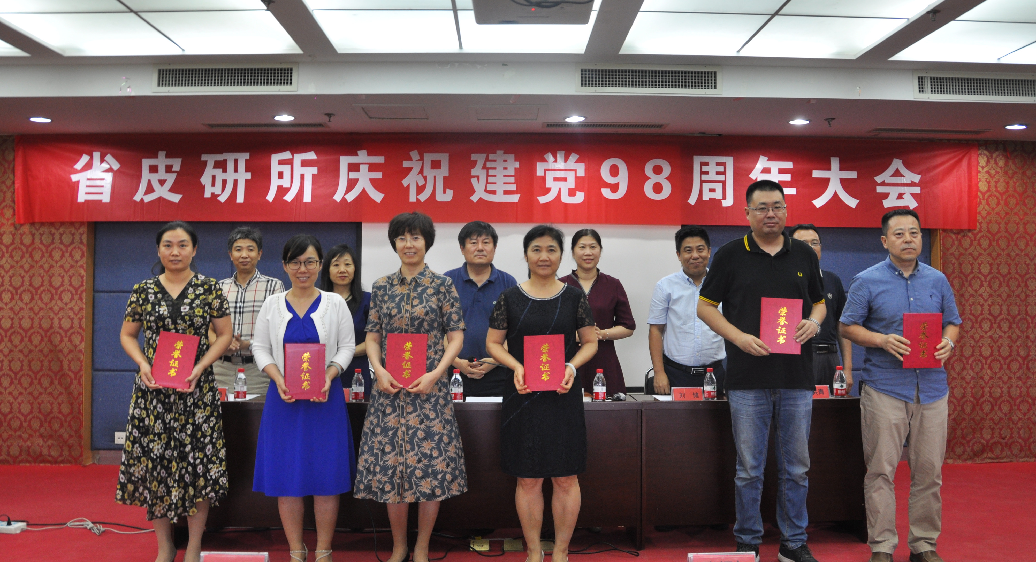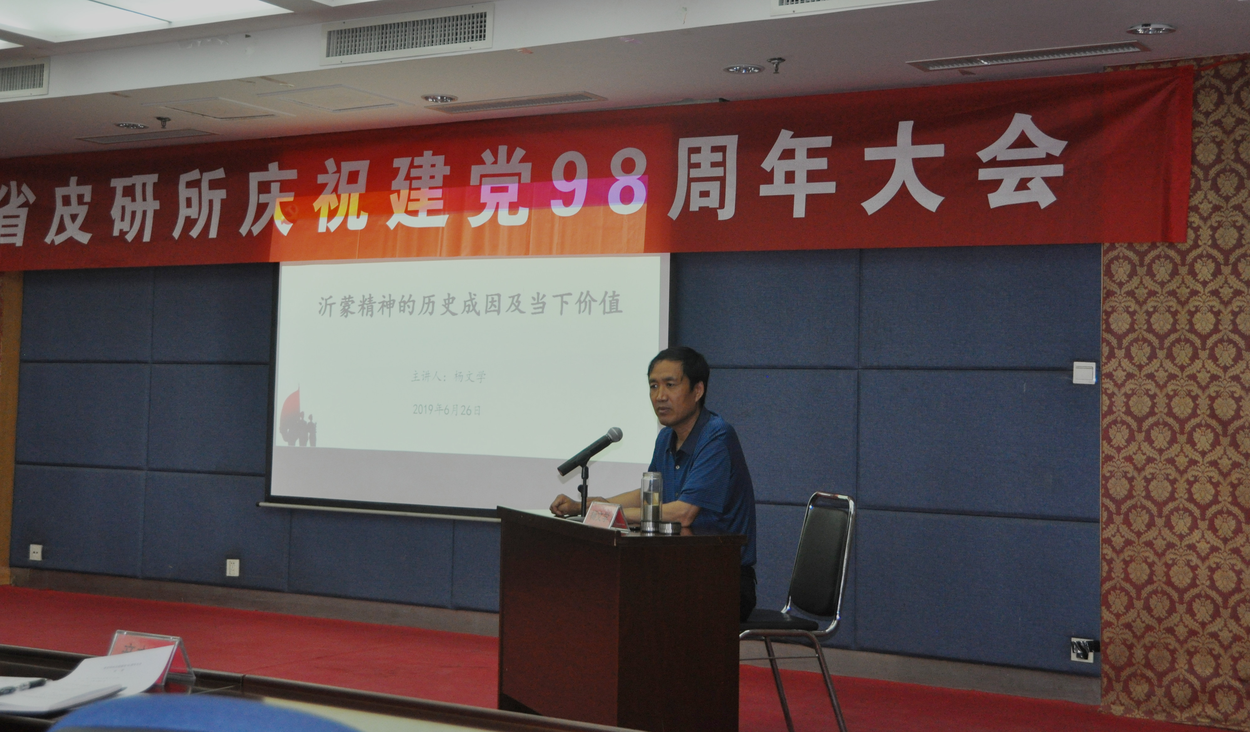 2019年6月26日下午,省皮研所党委组织召开党员大会,庆祝建党98周年。会议由山东第一医科大学(山东省医学科学院)副校(院)长,省皮研所所长、党委副书记张福仁主持,所党委成员、全体党员45人参加会议,非党员科主任列席会议。
