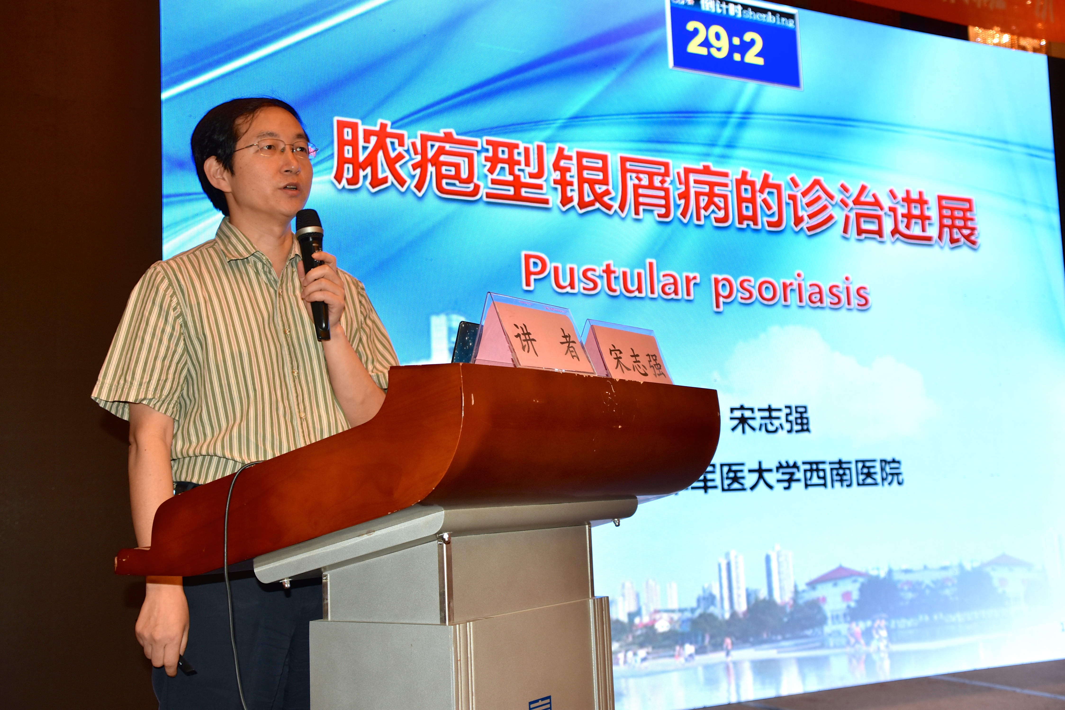 陆军军医大学第一附属医院(第三军医大学西南医院)主任宋志强教授作《脓疱型银屑病的诊治》讲座,介绍了脓疱型银屑病的分型、流行病学特点、临床表现、组织病理特点及鉴别诊断,重点讲解了治疗脓疱型银屑病的关键步骤、一线用药方案,以及严重急性患者的治疗方案,并分享了西南医院在脓疱型银屑病方面的治疗经验。