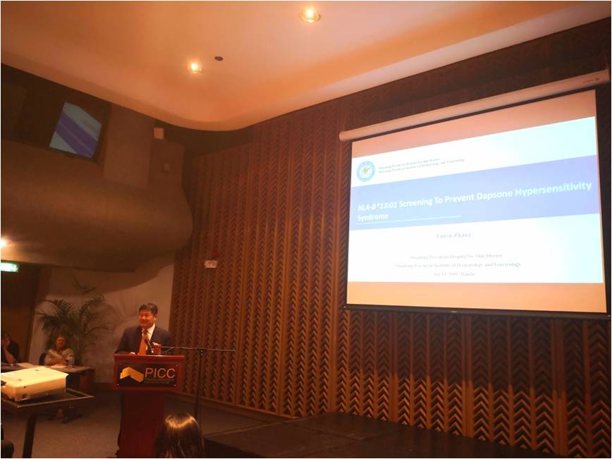 在麻风化学预防和麻风遗传学病因研究专场,张福仁教授分享了题为“疗前检测HLA-B*13:01预防氨苯砜综合征”的专题报告,向国际同行展示了本团队率先发现氨苯砜综合征风险位点并研发出检测试剂盒的原创性工作以及在中国21省市开展了疗前HLA-B*13:01检测预防致死性氨苯砜综合征(DHS)的临床研究情况。紧接着来自印尼、尼泊尔、缅甸的研究团队对我们的成果在其国家/地区人群中进行了验证。整场报告学术氛围浓厚,授课结束后,代表们主动跟张福仁教授提问请教、合影留念,并请张福仁教授及团队给与更多的支持和指导。