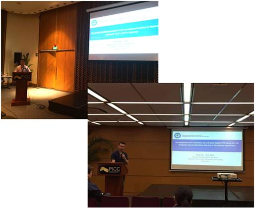 在麻风分子诊断和分子遗传学研究专场,本团队王川主任做了“IL23R基因内的致病变异G149R功能研究”专题报告,详细介绍了IL23R/Th17信号通路在麻风发病中的作用,首次探索了致病变异在疾病发病过程中的具体作用;孙乐乐助理研究员从技术研发和临床应用层面,向国际同行介绍了本团队为实现麻风早期诊断开发的分子诊断的新技术:微滴式数字PCR(ddPCR)技术,受到同行好评。