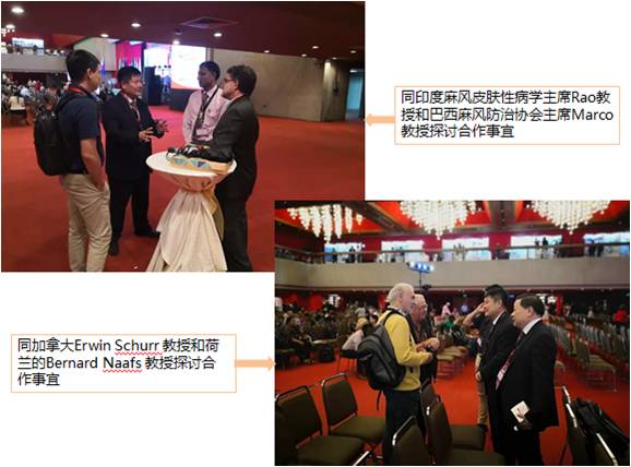 会议期间,张福仁教授同国际麻风防治协会(ILA)主席Roch Christian Johnson教授、秘书长Paul Saunderson教授及副主席Wim van Brakel教授、副主席Kawuma教授进行交谈,详细介绍了本团队以中国麻风防治的新技术和新成果。此外,在2019年山东泰安举办的发展中国家国际麻风培训班的合作交流基础上,张福仁教授与来自加拿大的Erwin Schurr教授、荷兰的Bernard Naafs教授、印度的Rao教授和巴西的Marco教授,围绕麻风分子生物学研究、精准防治研究和人才交流等诸多方面,进行了深入讨论,并探讨了今后合作的方向和计划。