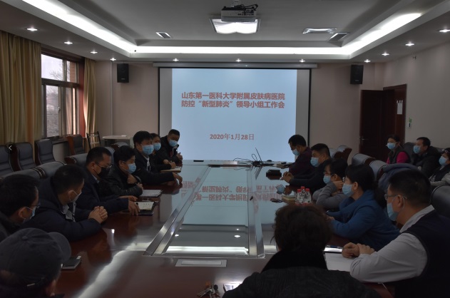 1月28日上午9点,山东第一医科大学附属皮肤病医院召开防控“新型肺炎”领导小组工作会,贯彻落实省市卫健委及槐荫区卫生局关于“新型肺炎”防控的工作要求,全面部署医院防控工作。山东第一医科大学(山东省医学科学院)副校(院)长、山东第一医科大学附属皮肤病医院院长张福仁,党委书记王婷等领导班子成员、各职能业务科室主任参加会议。