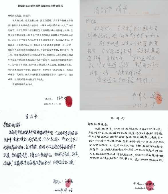 在收到派遣医疗队援鄂命令前,山东第一医科大学附属皮肤病医院已做好充分准备,先后有160名干部职工提交请战书,随时准备奔赴一线,支援湖北疫情防控工作。