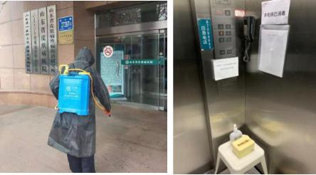 后勤保障工作积极到位,组织物业人员对全院环境卫生进行清洁、消毒,确保干净清洁,无死角。电梯准备一次性按键纸巾和免洗手消毒液,避免院内的交叉感染。