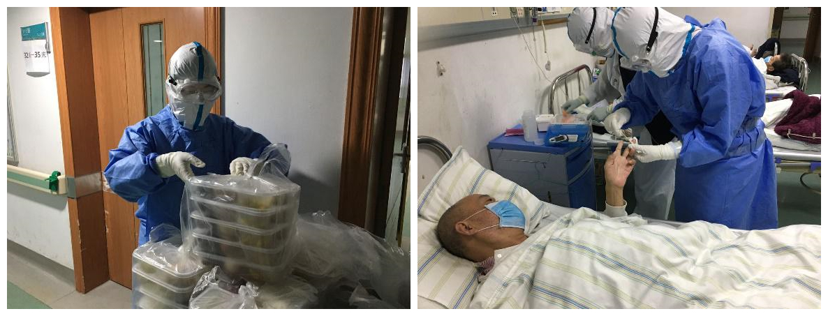 “2月28日我正式开始在武汉三院感染科隔离病房工作。今天上班时间为下午四点至晚上八点,与来自广饶县人民医院的魏大夫一起上班,魏大夫是呼吸专业,跟他一起值班,我就比较放心了。到病房护士站了解一下,目前本病区住院76人,重症13人。刚交完班,值班护士就告诉我们,22床病人发热,自测体温38.8度。我和魏大夫马上去22床看他,这是一位大约60岁的男性,一般情况还好,当时他没有不舒服,我叮嘱他多喝水,再次测量一下体温。病人说他暖瓶没有水了,我接着替他接了一壶开水。他的体温再次检测时已经降为37.8度,病情趋于平稳了。过一会微信工作群里有医生问是否给33床病人的儿子打电话,了解后才知道患者儿子在网站上查的核酸检测日期与医院不一样,昨夜一夜未睡。我问了武汉三院听班医生,查询了HIS中记录的结果,给患者儿子打电话,告诉他患者住院后22日检测是阳性,但是今天检测结果已经阴性,病人儿子表示感谢,之后我又到房间内告诉这名病人检测结果,同房间的其他病人也纷纷问自己的检测结果,又给他们查询结果后告诉他们。当得知自己的检测结果是阴性后,3位病人非常高兴,都说快出院了,对我表示感谢。此时一起上班的来自山东医疗队的一位护士感觉不舒服,自觉胸闷、恶心,问了她一下,没有基础疾病,估计与首次进隔离病房紧张以及带口罩密闭引起的不适,让她做到椅子上休息,如加重就需要出病房了。值班期间我有意了解了一下部分病人的发病过程,一位病人告诉我他发病已经3周,转到武汉三院住院也已经2周,咳嗽不明显,但是总感觉咽部不适和胸闷,看来新冠肺炎的症状并不完全一样。