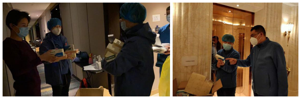 左图:正在为医务人员发放尿素软膏硅油乳膏