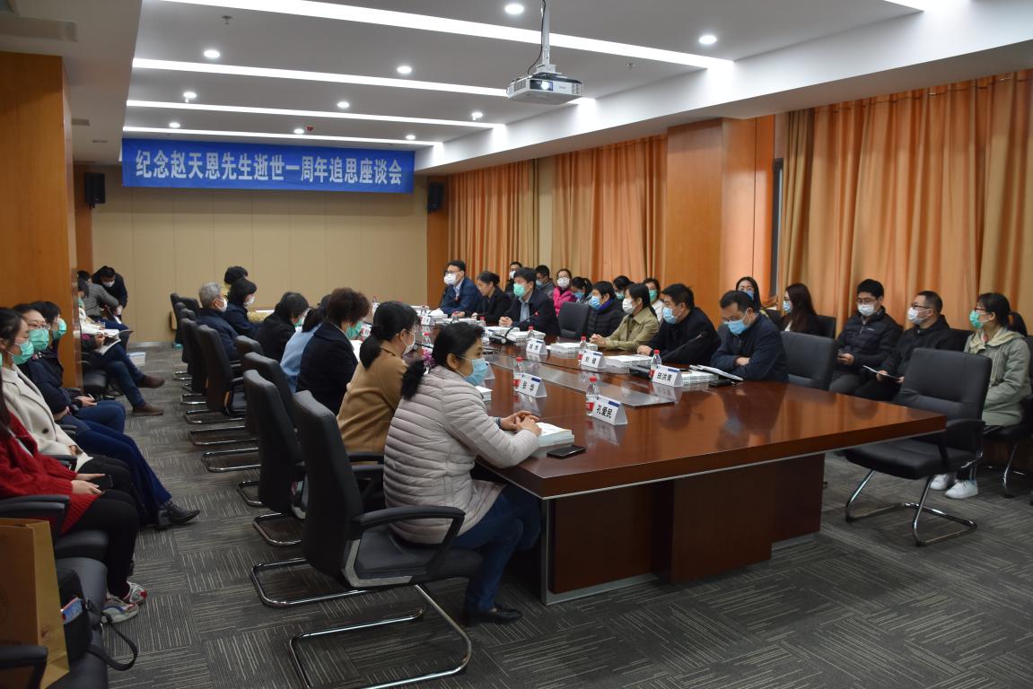 2020年4月2日,原山东省皮肤病性病防治研究所所长、名誉所长、著名皮肤病学专家赵天恩先生逝世一周年追思座谈会在山东第一医科大学附属皮肤病医院新落成大楼9楼会议室举行。座谈会由所党委书记王婷主持,所领导班子全体成员、赵先生夫人、赵先生生前友好、学生代表、科主任代表、青年职工代表等42人出席。