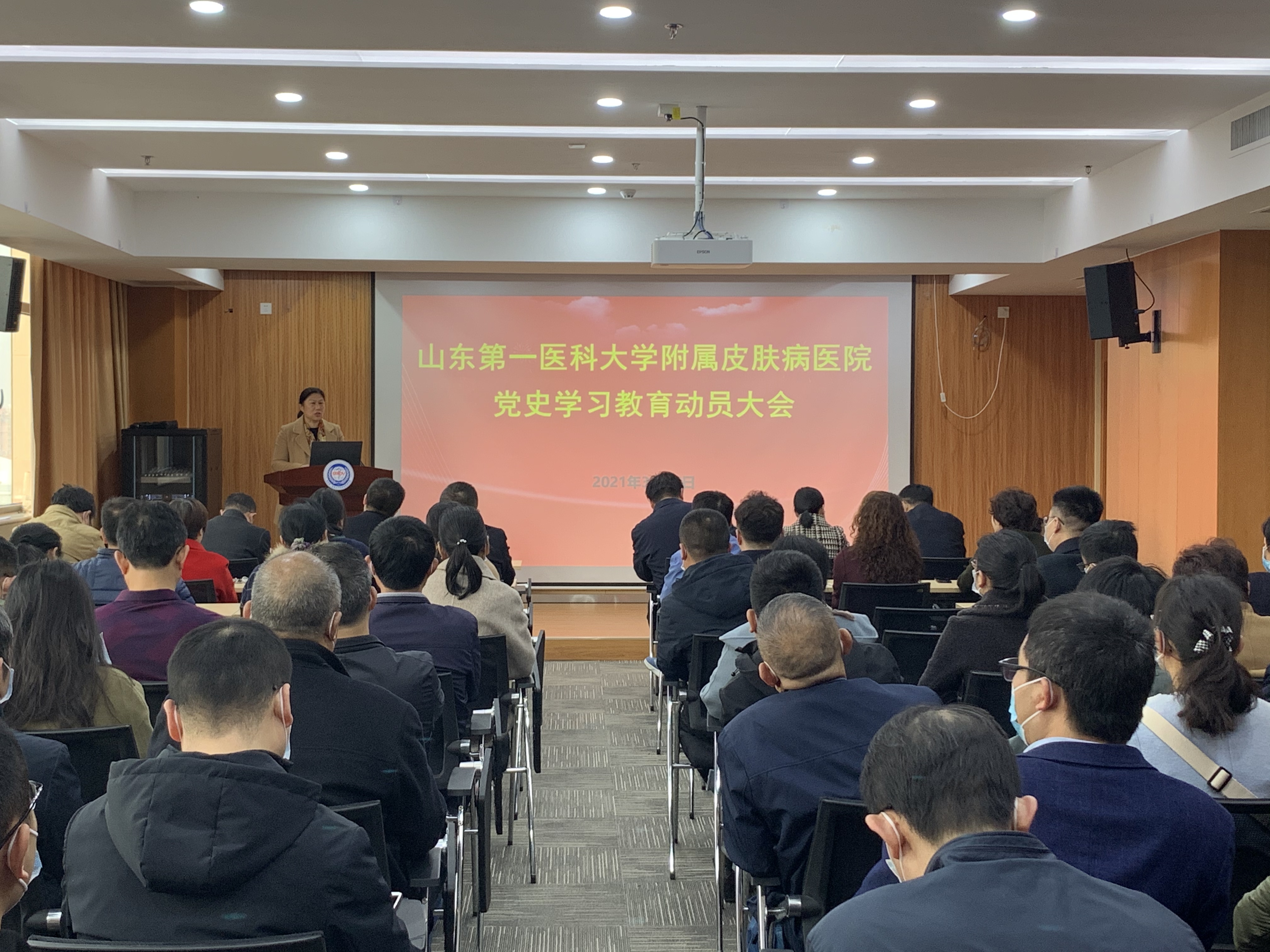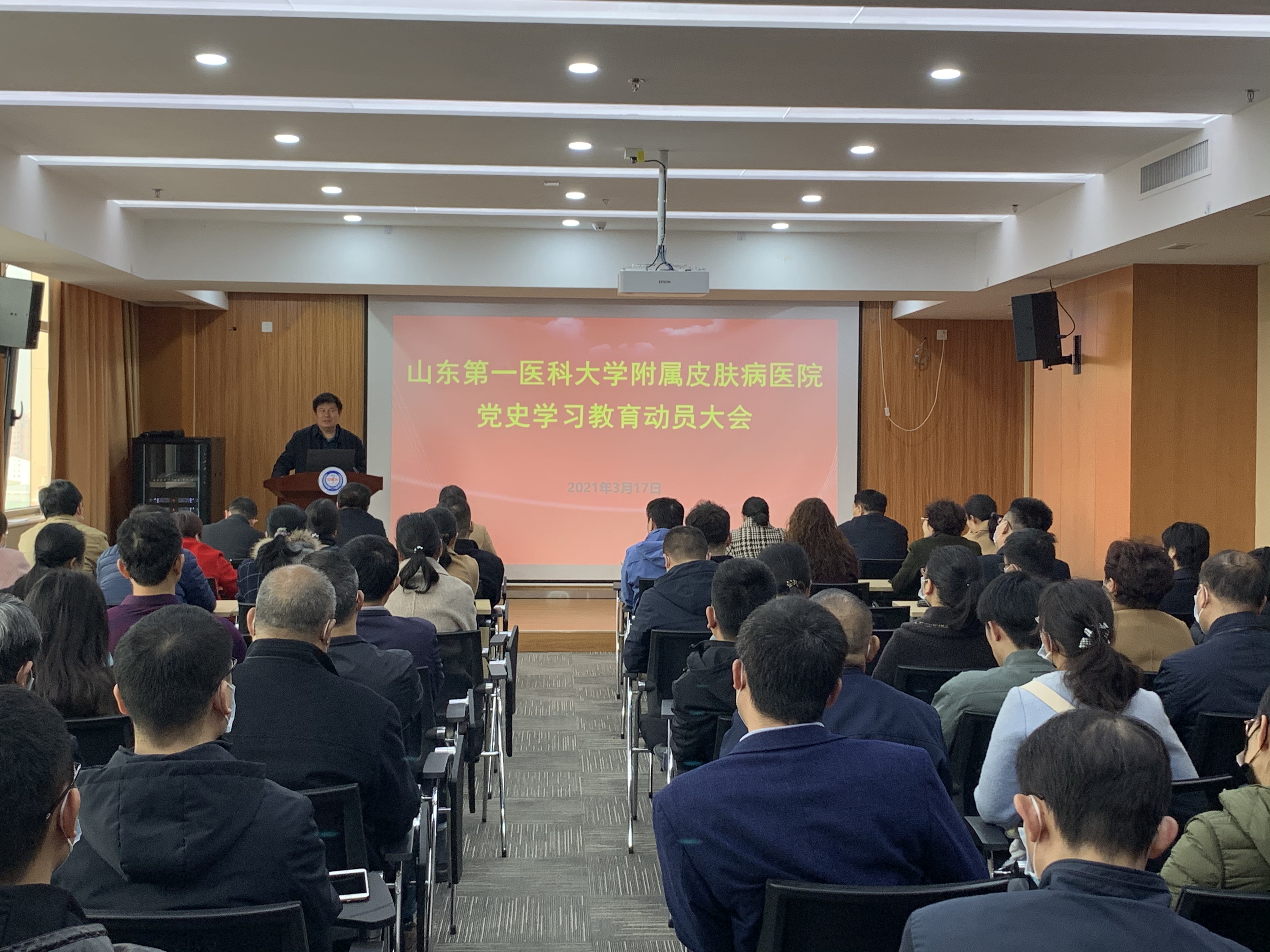 3月17日,山东第一医科大学附属皮肤病医院召开党史学习教育动员大会,深入学习贯彻习近平总书记在党史学习教育动员大会上的重要讲话精神,认真落实中央、省委和山东第一医科大学党史学习教育动员大会精神,对我院开展党史学习教育进行动员部署。院长张福仁主持会议。