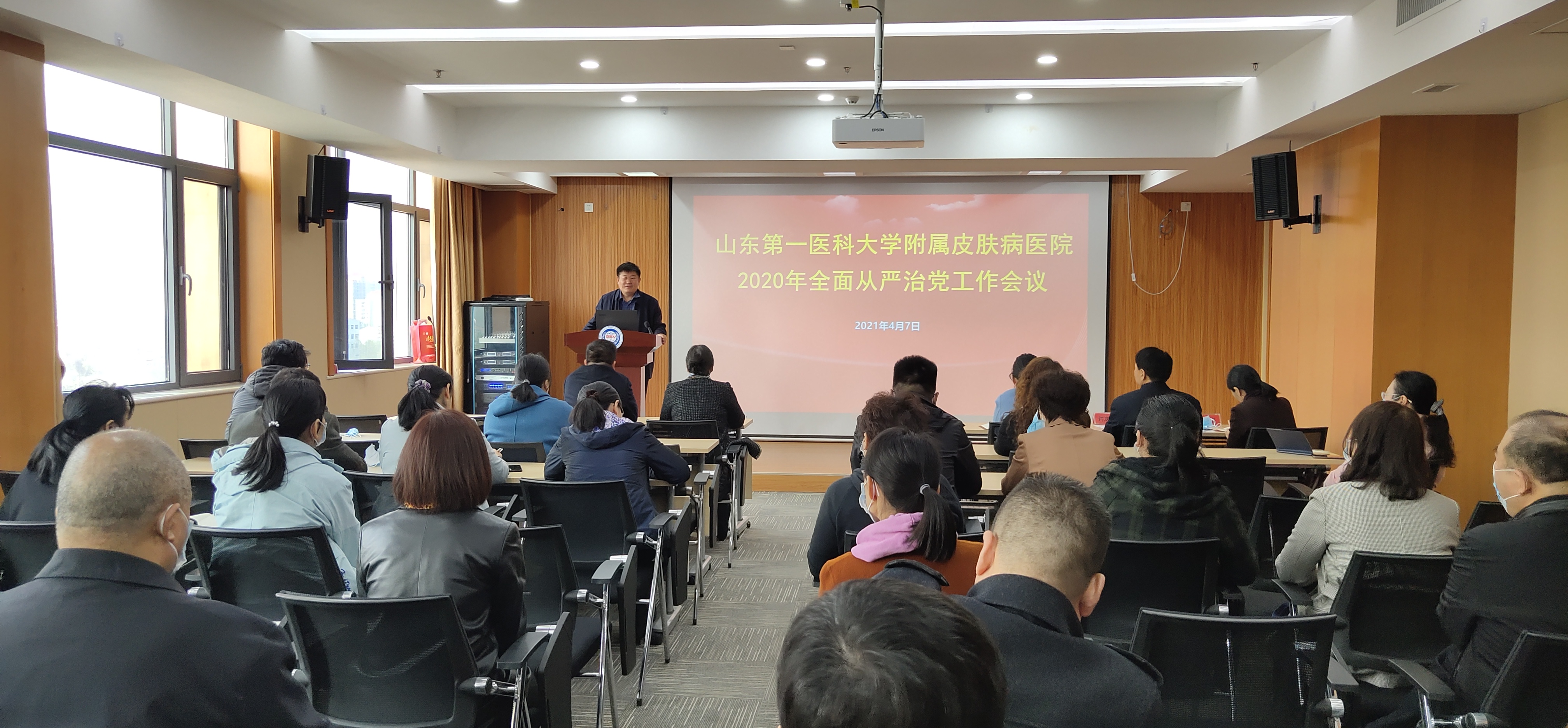 4月7日,山东第一医科大学附属皮肤病医院召开2021年全面从严治党工作会议,传达学习山东第一医科大学(山东省医学科学院)2021年全面从严治党工会议精神,总结2020年全面从严治党工作,部署2021年全面从严治党工作任务。会议由院党委书记王婷主持,院党委班子成员及全体在职党员51人参加会议。