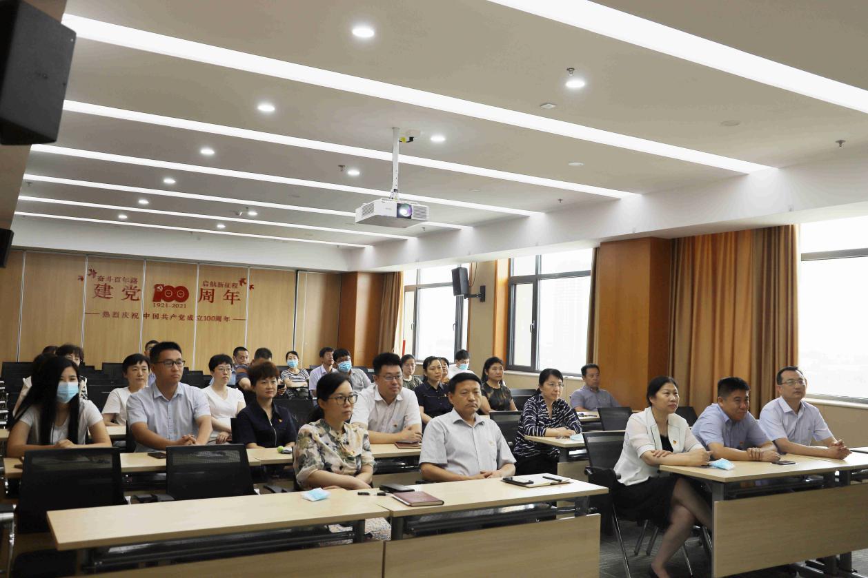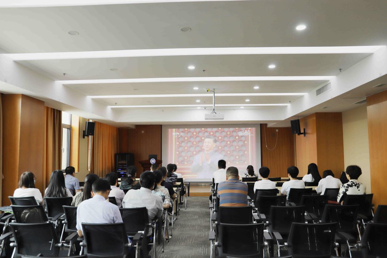庆祝中国共产党成立100周年大会于今天上午8时在北京天安门广场隆重举行,中共中央总书记、国家主席、中央军委主席习近平发表重要讲话。山东第一医科大学附属皮肤病医院党委书记王婷等班子成员、各党支部党员等集体收看庆祝中国共产党成立100周年大会直播。