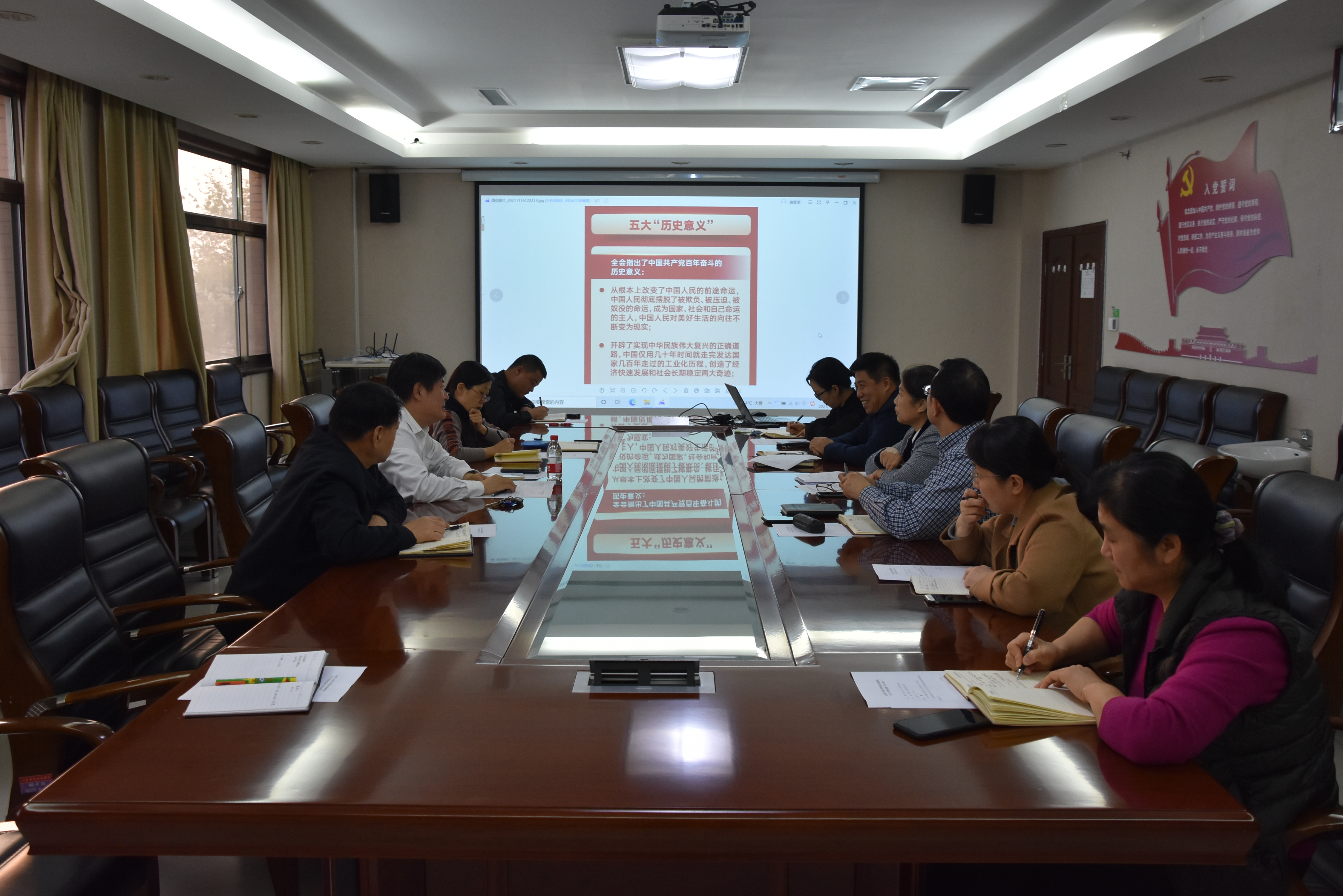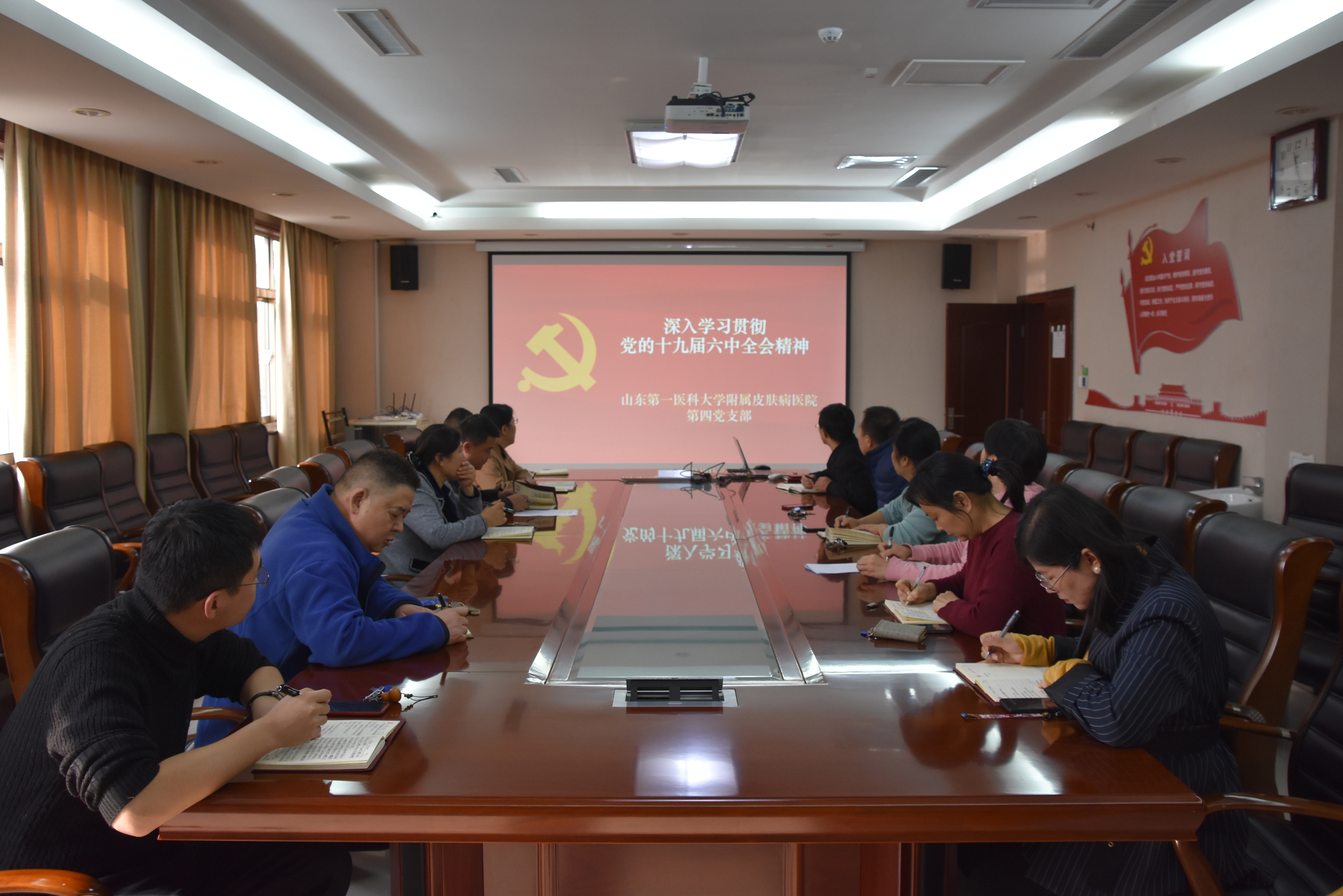 11月8日~11日,党的十九届六中全会在北京召开。山一大附属皮肤病医院党委理论学习中心组会议开展交流研讨,党委会开展专题学习,全院召开党员大会传达学习此次全会精神,各党支部以多种形式开展学习活动。全院掀起了学习党的十九届六中全会精神的热潮。