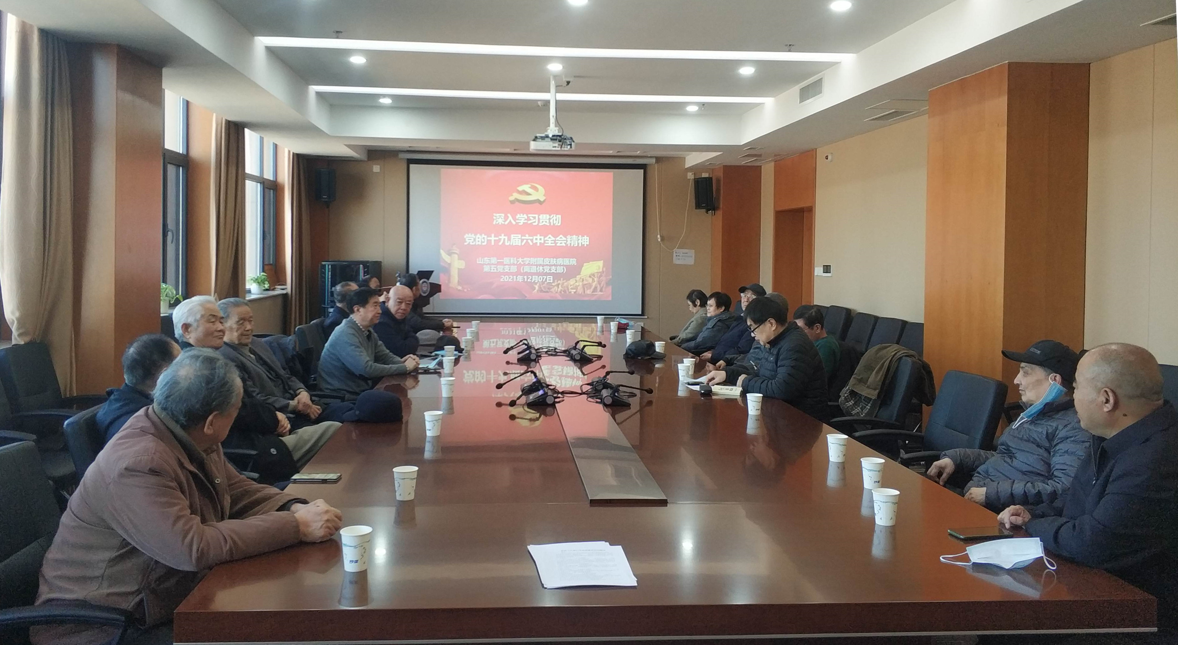 12月7日上午,山东第一医科大学附属皮肤病医院离退休党支部召开党员大会,开展主题党日活动,学习贯彻党的十九届六中全会精神,全体离退休党员参加活动。
