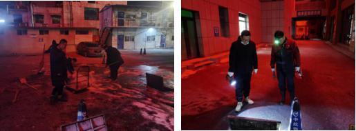 接到报告后,安全生产与应急管理部刘军科长、物业公司经理张怀正和物业员工王劲松、保安队曹引发队长第一时间赶到现场。午夜寒风凛冽,布满积水的地面很快就会结冰,而早上患者和医护人员即将到来。为了保证他们的安全和尽快恢复供水,刘军科长等立即组织维修人员关闭总阀门,同时组织保安清扫积水、播撒融雪剂防止结冰,而后又对管道其他几处水表接口加包了防寒材料防止冻裂,凌晨1点半,初步抢修基本完成。但是维修还缺少部分配件,刘军科长等决定,天亮上班后立刻前去购买。
